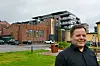 NYBYGG: Thor Einar Krogh foran nye Salemkirken i Sandefjord.