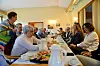LANGBORD: Når møtet er over, samles alle rundt det store langbordet på venstre side av salen.