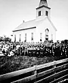 NORSK KIRKE I USA: En menighet med norske innvandrere er samlet for innvielsesfesten av deres nye bygg ved navnet East Blue Mounds Evangelical Lutheran Church sørvest i den amerikanske delstaten Wisconsin i 1875.