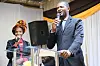 TALE: Pastor Amon snakker til forsamlingen i den første menigheten som han har grunnlagt i byen Somerset utenfor Cape Town. Tandi oversetter for gjestene.