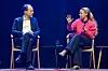 MIDTØSTEN: På bildet ser vi historiker og forfatter Marte Heian-Engdal i samtale med NRKS utenriksredaktør Sigurd Falkenberg Mikkelsen i forbindelse med NHOs årskonferanse tidligere i år. Foto: Heiko junge / NTB