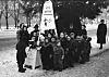 OSLO DESEMBER 1940. Slumsøstrenes (kvinnegruppe i Frelsesarmeen) juleinnsamling ved julegranen på Universitetsplassen på Karl Johan sammen med barnehagebarn