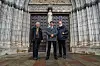 OLAVSSAGA: Jon Gunnar Jørgensen, Bård Titlestad og Anders Kvåle Rue gir ut ny versjon av Den legendariske Olavssaga. Her ved Olavsstatuen utenfor Uppsala Domkirke.