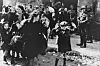 WARSZAWA-GETTOEN: På dette arkivbildet 19. april 1943 blir en gruppe jøder eskortert fra Warszawa-gettoen av tyske soldater.