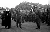 PREST: På bildet ser vi biskop Eivind Berggrav ankomme 17. mai-gudstjeneste på Akershus festning sammen med kronprins Olav i 1945.