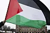 FLAGG: En demonstrant vifter med det palestinske flagget utenfor FNs hovedforsamling