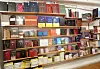 BIBELUTVALG: En vegg med bibler i «Katakomben» i Bok & Media, Oslo.