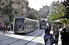 JERUSALEM: Bybanevogner passerer hverandre i den travle Jaffagaten i sentrum av Israels hovedstad.