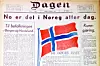 Slik så avisen Dagen ut onsdag 9. mai 1945. Se hele forsiden nederst på siden her. Faksimile: Dagen
