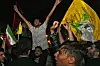 JUBEL: Demonstranter feirer Irans missilangrep mot Israel under en samling foran den britiske ambassaden i Teheran, Iran, 1. oktober.