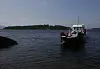 MS Thorbjørn kommer til fastlandet i Tyrifjorden, med Utøya i bakgrunnen. Foto: Vidar Ruud / NTB scanpix
