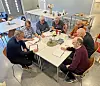 BIBELGRUPPE FOR MENN: Annenhver uke har rundt ti menn vært samlet til bibelsamtaler, sosialt prat og ikke minst et godt måltid i Ålgård baptistmenighet. Pastor Sten Sørensen nr. to f.v. i bildet.