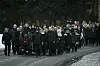 BJØRKELANGEN: Hester fraktet båren til Sara Christiane Holmedahl Sandsmark fra Bjørkelangen skole, der hun var elev, til Bjørkelangen kirke, hvor hun ble begravet. Foto: Heiko Junge / NTB