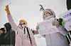 PROTEST:: Anna Chagina og ei venninne i fredeleg protest mot krigen, i Tomsk i Sibir i mars 2022.