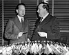 ULIKE: «Du overtar verdens vanskeligste jobb», var den velkomsthilsen nordmannen Trygve Lie (t.h.) ga sin ettermann da han i 1953 overlot ansvaret som FNs generalsekretær til Dag Hammarskjöld (t.v.).