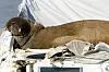 Hvalrossen Freya ligger på en båt i Frognerkilen.