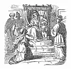 ESTER: Vintage tegning eller gravering av bibelsk historie om Ester som står sammen med Mordekai foran tronen til den persiske kong Ahausuerus eller Xerxes.