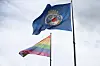 REGNBUEFLAGGET. Her ved siden av Oslo kommunes eget flagg.