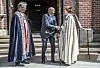 FREDRIKSTAD: Biskop Kari Mangrud Alvsvåg (t.h.) gratuleres av kong Harald etter vigselen i Fredrikstad Domkirke. Til venstre preses Olav Fykse Tveit.