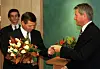MYE ENDRET: Avtroppende statsminister Thorbjørn Jagland (t.h.) overrekker nøkkelen til påtroppende statsminister Kjell Magne Bondevik i 1997. Jonas Gahr Støre i bakgrunnen.