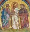 EMMAUSVANDRERNE: Mosaikk av Jesus på vei til Emmaus.