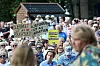 OLJEFONDET: Statsminister Jonas Gahr Støre (Ap) og Høyres leder Erna Solberg deltok under Olavfestdagene i Trondheim i august. Under samtalen demonstrerte flere mot Oljefondets investeringer i israelske selskaper.