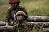 Ei av øvingane er overfiring. Deltakarane skal åle seg langs eit tau som er spent over ei elv.