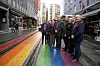 BEKLAGET: Olav Fykse Tveit, Den norske kirkes ledende biskop, sammen med flere biskoper står i regnbuegata utenfor London Pub.