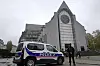 VAKTER: Fransk politi har tatt oppstilling utenfor kirken Notre Dame i Lille i Nord-Frankrike etter frykt for angrep rettet mot kirken. Kirker i Europa er i økende grad utsatt for hærverk, ildspåsettelse og tyverier.