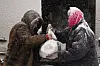 ETT ÅR MED KRIG: Utsulting av sivilbefolkningen blir stadig mer dramatisk og langvarig, skriver Nils Tore Gjerde. Her mottar en kvinne en pose med matvarer fra en humanitær organisasjon i landsbyen Zelene, Ukraina, sist lørdag.