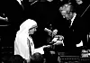 TRO MED GJERNINGER: Mor Teresa mottar Nobels Fredspris for i Oslo 10. desember 1979. Den sosiale dimensjonen er en hovedbestanddel i kristendommen, skriver Ole Bjarne Amdahl.
