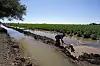 VANNING: Landområder som heller kunne vært brukt til verdifull matproduksjon okkuperes til bomull. Bildet viser en bomullsbonde i Mexico, som vanner en åker med vann fra Coloradoelva ved å blokkere vannet med gjørme.