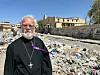 IRAK: Presten Emanuel Youkhana foran ruinene av Jomfru Maria-kirken i Mosul og søppelplassen som er blitt plassert der etter at kristne ble tvunget på flukt av IS i 2014.