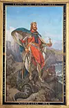 ATTRIBUTTER: Olavs fremste attributter som helgen er kongekronen, øksen og en drage under hans føtter. Dette maleriet er malt av Pius Adamowitsch Welonsky i 1893, og henger i et av sidekapellene i den katolske basilikaen San Carlo al Corso i Roma.