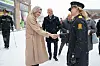NYE POLITIKONTOR: Justisminister Emilie Enger Mehl og finansminister Trygve Slagsvold Vedum hilser på visepolitimester i Oslo, Cecilie Lilaas-Skari, i forbindelse med opprettelsen av nye polititjenestesteder på Mortensrud i Oslo.