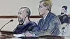 RETTSSAK: Rafat Amirov (tv) ble funnet skyldige i å ha forsøkt å myrde den iransk-amerikanske journalisten og aktivisten Masih Alinejad (tegning fra rettssalen).