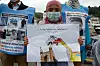 PROTESTERER: En jente fra uigurfolket demonsterer med en tegning som illustrerer hvordan Kina fortærer uigurenes kultur i Xinjiang. Bildet ble tatt i Tyrkia i sommer.