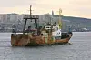 RUSSISK: En russisk tråler på veg inn Murmansk havn. Russiske fiskebåter har imidlertid fortsatt lov til å anløpe norske havner og levere betydelige mengder fisk.