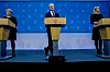 UTGIFTER: Statsminister Jonas Gahr Støre, arbeids- og inkluderingsminister Marte Mjøs Persen og justis- og beredskapsminister Emilie Enger Mehl orienterte pressen om konsekvensene av Ukraina-krigen for Norge. Fem milliarder blir avsatt til mottaksplasser.