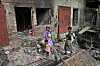 VANDALISERT: En kristen mor og barna hennes passerer boliger som er vandalisert av en muslimsk mobb.