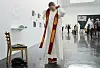 SHOW: Det er ikke en høymesse presten skal gjennomføre. Ingen nattverdsfeiring. Det er ikke en gang snakk om en aldri så liten andakt for de fremmøtte. FOTO: Håkon Mosvold Larsen / NTB scanpix