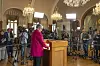 «Good morning», sa Nobelkomiteens leder Berit Reiss-Andresen og smilte varmt til det fremmøtte pressekorpset. Det var de minuttene i året hvor manges øyne er vendt mot Norge.