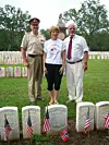 MEMORIAL DAY 2009: MHojem ved minnesteinen for Christian Knudson fra Land. I midten formann i Landings Lag i USA, Sandra Hendrickson. Til høyre Torbjørn Greipsland.
