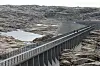 DYR STRAUM: Låg vatnstand i Blåsjø, som er det største kraftmagasinet i Norge. Demningen på biletet ligg i Førrevassdammen.