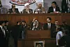 Alger 15. no­vem­ber 1988: PLO-for­mann Yassir Ara­fat går på ta­ler­sto­len foran Det pa­le­stins­ke na­sjo­nal­rå­det og leser et do­ku­ment med tit­te­len «Den pa­le­stins­ke uav­hen­gig­hets­er­klæ­rin­gen».