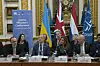 LONDON 20. MARS: Ukrainas justisminister, Denys Maliuska (t.v.) taler under justisministerkonferansen til støtte for Den internasjonale straffedomstolen (ICC) og etterforskningen av situasjonen i Ukraina.