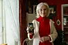 Anne-Lene Refsum (61) har dekket på med et gammelt servise som hun har arvet. Hun serverer kaffe, boller og kjeks. På bordet ligger også mange bilder.