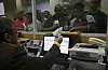 LØNNINGSKØ: Offentlig ansatte i Gaza by står i kø for å motta lønn som de palestinske myndighetene har nektet å betale ut.
