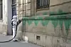 VANDALISME: Flere jødiske bygninger ble vandalisert med grønnfarge i Paris i fjor vår. Her fjerner en arbeider fargen.