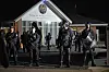 Politi holdt vakt utenfor kirken mandag kveld etter knivstikkingen. Foto: Mark Baker / AP / NTB